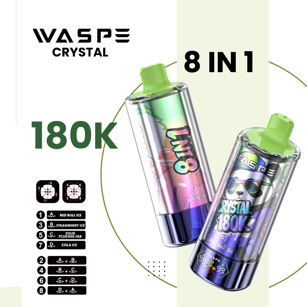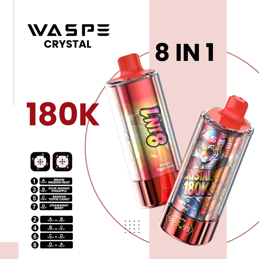 Waspe Kristal 180K Puffs 8-in-1 Wegwerp Vape (Magazijn in China) Wholesale MOQ 50