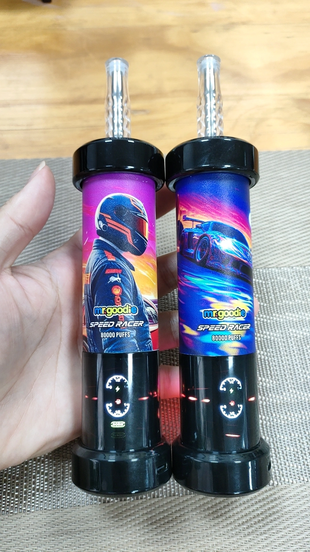 Mr. Goodie Speed Racer 80K prinaša zmogljivost v slogu hookah v kompaktni enkratni vape. Zasnovan za oba načina MTL (80.000 potegov) in DTL (40.000 potegov), uporabnikom omogoča uživanje dveh edinstvenih izkušenj vapinga v eni napravi — od tesnih potegov iz ust do globokih oblakov v slogu shishe.